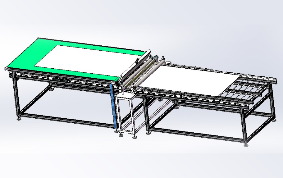 本生產(chǎn)線依據(jù)用戶需求,進行“量身”設(shè)計,由層壓前鋪設(shè)傳輸線;通過不同機構(gòu)的傳輸、轉(zhuǎn)運、變向、定位、旋轉(zhuǎn)/釋放實現(xiàn)組件封裝過程的流水化操作,可提高單位組件生產(chǎn)效率。
